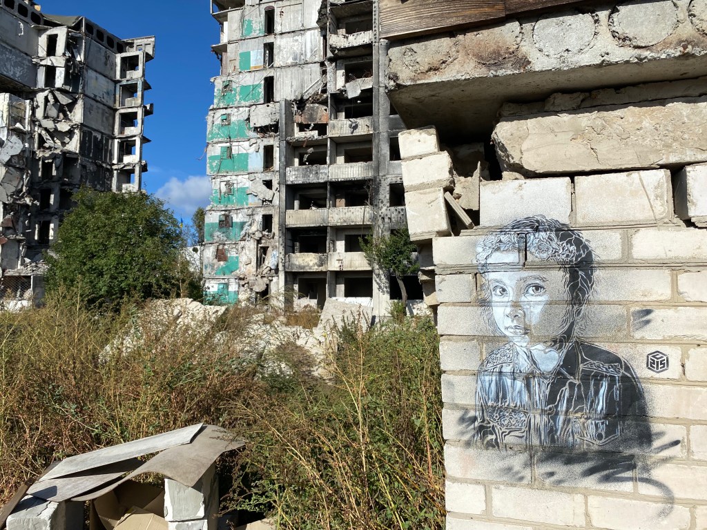 During Ukrainian war, in 2022, the famous artist Banksy painted two artworks in the village of Borodyanka, hardly damaged by bombs and tanks. The two artworks are “The Gymnast” and “David and Golia” and are signed by Banksy himself. At the same time has worked another important artist from France, C 215, realizing in the same village more than 10 pieces.